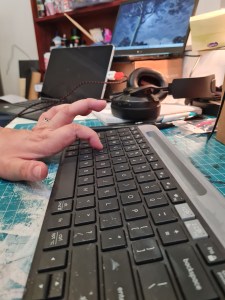 It was so aggravating. I had no idea what was happening, but I knew it was something to do with my wayward fingers. Because of my finger weakness, I am a two-finger typist. And finger muscle contractures cause me to type with curved index fingers. This exaggerated curve on the left hand was causing me to hit the “alt” key with the palm of the hand at the base of my index finger and then when I hit a certain key with my fingertip it activated a shortcut that deleted all the text I had written. (I have an amazing ability to do odd things accidentally but which I can never replicate intentionally). My solution to that was to remove the “alt” key covering.