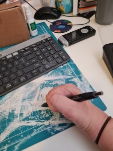It was also around this time that I started struggling to hold a pen. I’ve never held a pen “correctly”. The teachers in my early school years tried to change how I gripped my pen, but I couldn’t use it like that. I didn’t have the strength in the areas required to hold a pen “correctly”. I’ve always had a modified pen grip but that started slipping. So, I had to work out a new way to hold a pen.