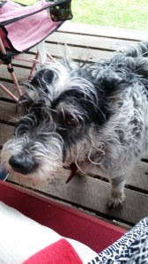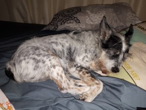As her doggy dementia progressed we had to start actively feeding her. Holding her under one arm and spooning up the biscuit canned meat mush for her to eat. Sometimes she mistook a thumb for a bikkie and there were some Mum finger chomps!! This time was an absolute labour of love. Our little love needed us. She was still getting joy out of life, she recognised us (I think by smell mostly), and there was the odd occasion where she actually attempted a tiny frolic.