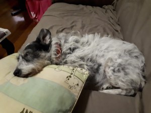 Gradually her eyes started going cloudy. Her hearing started failing and her little legs couldn’t jump onto the couch or the beds. She had always been a furniture dog so we would pick her up and put her on the furniture. But then her blindness caused her to fall off beds and couches so we stopped sleeping with her on the bed and would help her up onto the couch. We bought a baby bed guard to stop her falling off the couch and only had her on the couch when we were there with her.