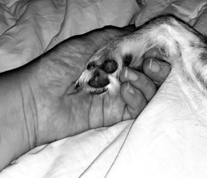 Through out this time, we were in contact with the vet regarding her health and making her comfortable. They gave us information and questionnaires to help us determine when was the right time to let her go. A couple of measures that we used to consider our course of action was that she was still eating with gusto and that she still “recognized” us. She would bark at people she didn’t know but if we’d been out for a few hours, when we came back and gave her a hello hug, her little ears would go back and she’d get her wiggle on. Signs we knew were her signs of recognition and happiness.
