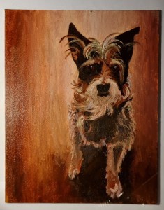 This portrait of Peppa was a gift from our Dad who had it commissioned by his friend Kay Knights. It is a beautiful representation of our precious girl, from the glint in her eyes, to the curl of her beard and the one-foot-forward stance. It sits in pride of place beside Peppa’s ashes.